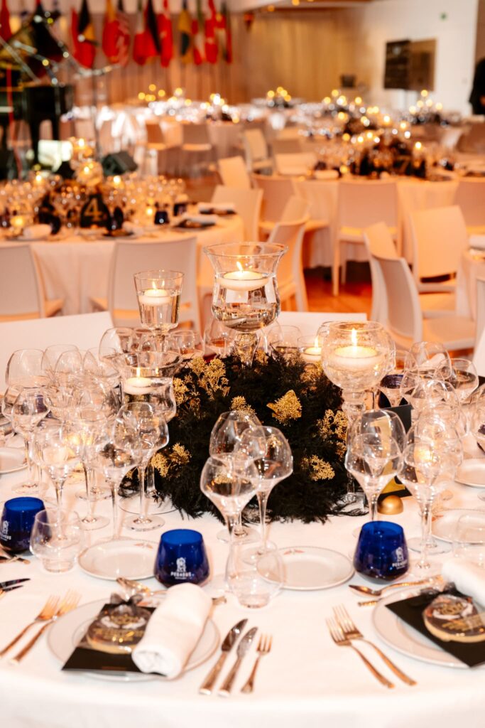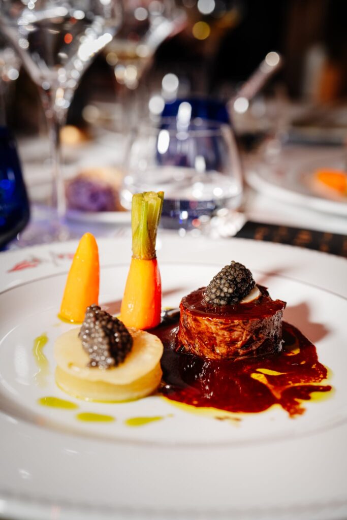 After the judging session, the afternoon gave way to festivities. A refined cocktail reception opened the evening, featuring curated bars of caviar, oysters, olive oils (from Domaine de Léos), black garlic, champagne and fine wines.
